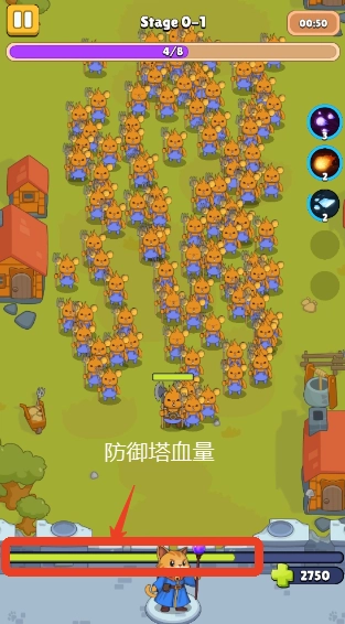 4、穿过猫巫师脑袋的绿条条是猫咪城堡的血量。