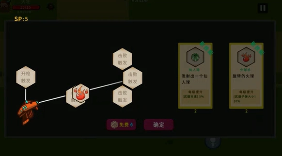 4、击败怪物拾取能量获得足够的SP后,可以学习技能并自由搭配。