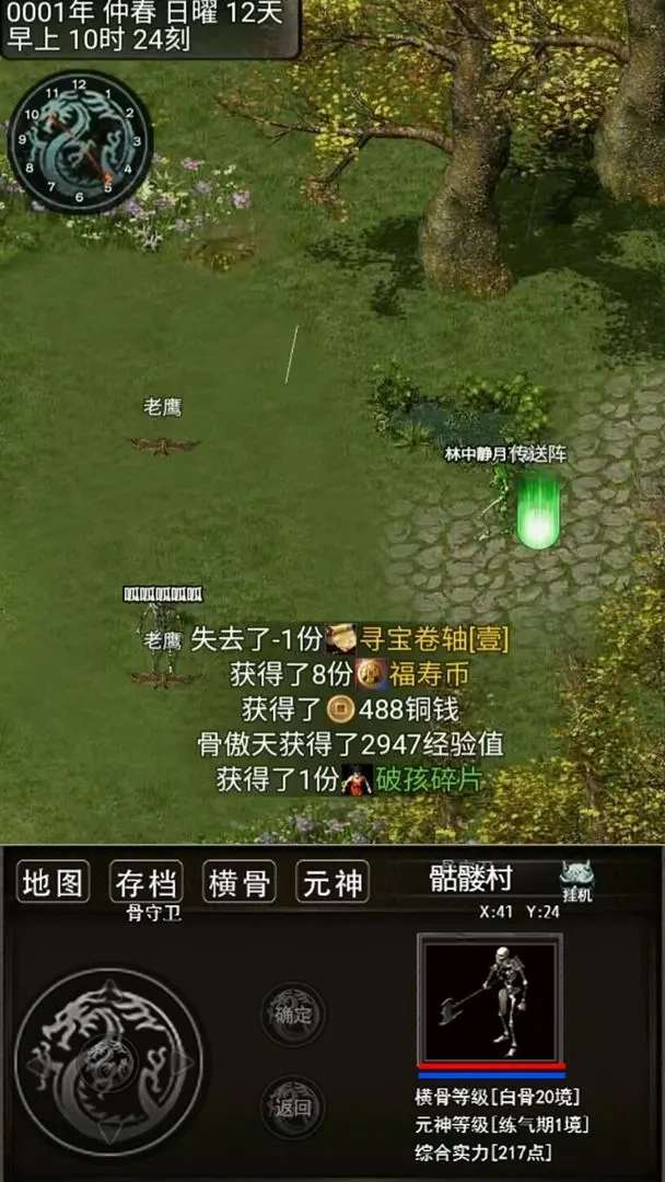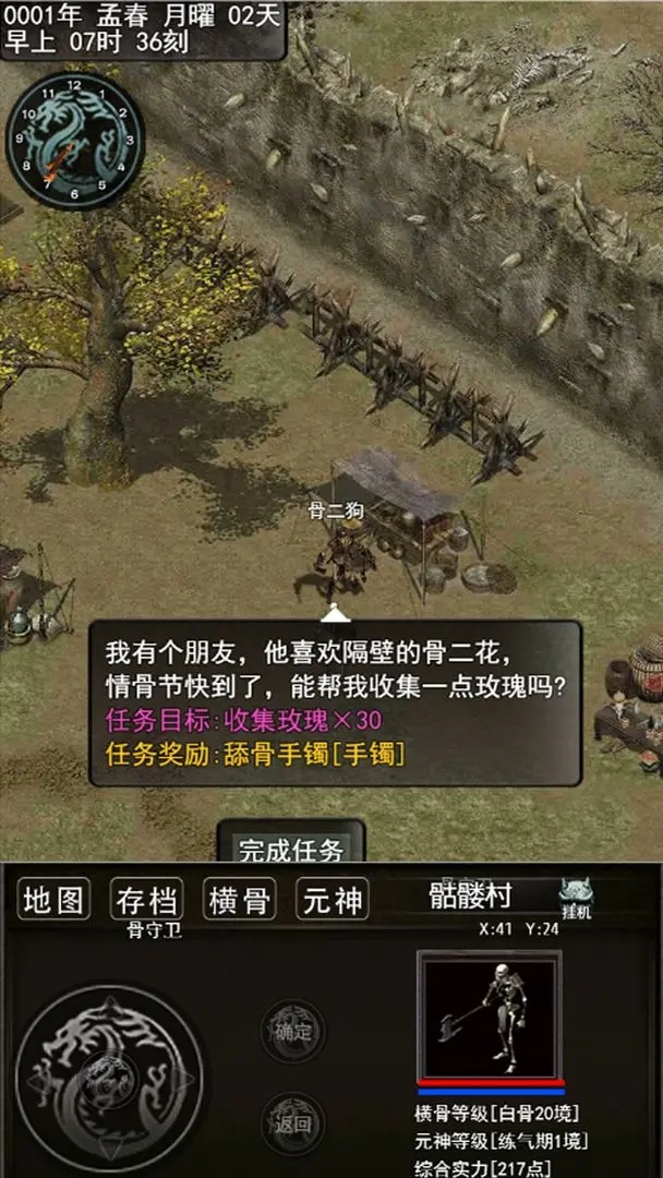 3.在骨叔叔处,玩家可随机选择一项元神天赋。前期建议优先完成骨傲天的头颅任务,完成后将获得一枚全属性+10的宝石,对提升实力大有裨益。