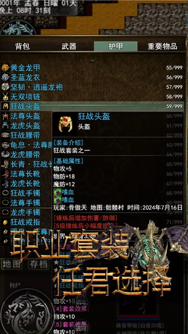 3.丰富的装备系统:游戏中拥有各式千奇百怪的装备,玩家可通过打怪、寻宝等多种方式获得心仪的装备。