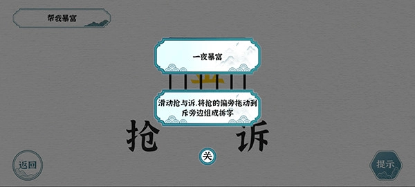 1、文字拆解重组闯关,如猴字变提手旁捞月、抢诉各取一半合成拆字打开笼子,脑洞大开;