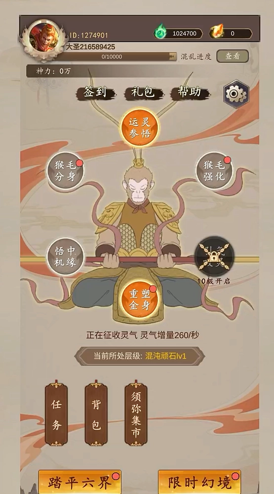 4. 金身重塑:玩家可通过完成各类任务与挑战,搜集所需资源,以此提升大圣的本体等级。大圣的每一个修炼阶段都兼具挑战与机遇,玩家能在这个过程中切实感受到自身实力的逐步增强。