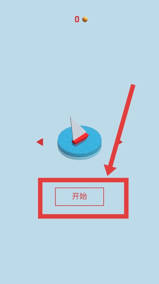 在初始界面点击开始按钮后,游戏随即启动,帆船驶入河道;此时需根据提示点击屏幕来操控帆船的移动方向,为收集河道里的金球做好准备。