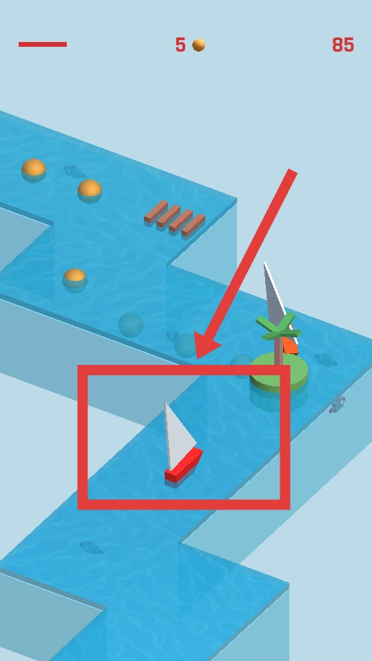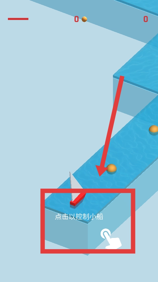 在河道航行过程中,通过持续点击屏幕来操控帆船,要避开木块之类的障碍物,准确地收集金球,还要留意河道的转弯情况以及地形的变化。