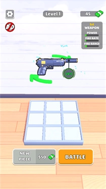 2. 两把等级相同的水枪接触时,会自动合成出一把等级更高的新武器,比如两把小水枪就能合成一把完整的手枪。