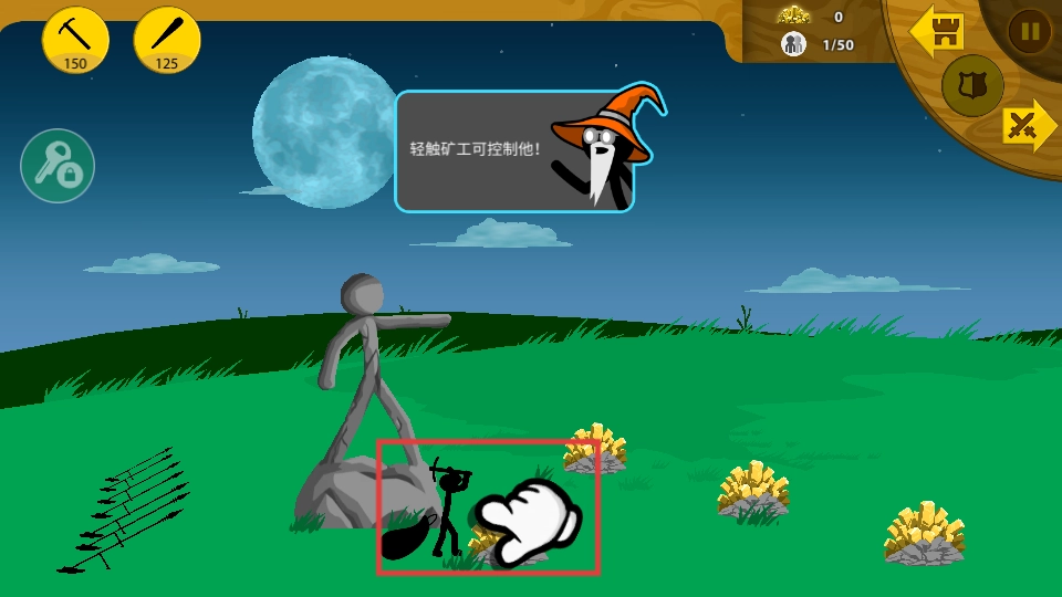 4、轻触矿工来控制其采集资源,通过持续积累资源,推动游戏进程向前发展。