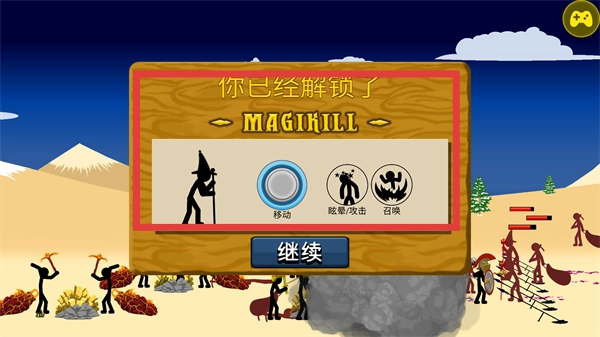 4、解锁【MAGIHILL】单位,查看它的【移动】【施展攻击】等操作,点击【继续】来熟悉新单位的用法。