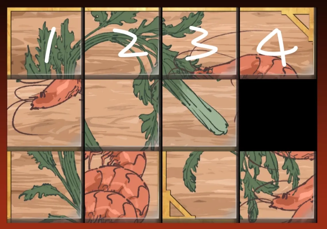 然后依照公式“下左下右 上左上右 下下左上”移动滑块,数字4就会移到上方了。