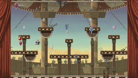 1. 复古像素美术构建出一个氛围独特的马戏团世界,角色造型夸张且富有戏剧感。