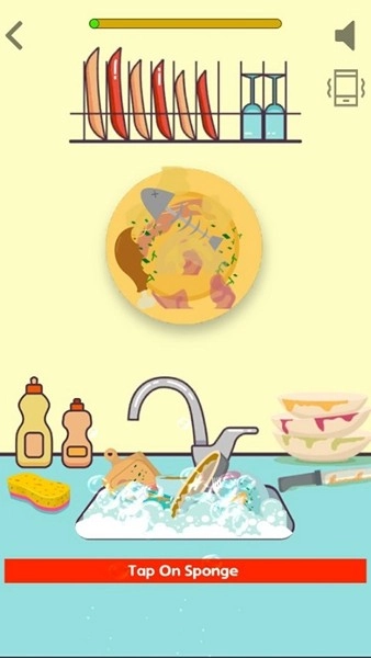 这里要遵循特定的步骤:先涂抹洗洁精,再把洗碗工具移到盘子上,最后用干毛巾擦干就可以了。