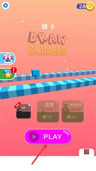 1、在【级-6】的【DRAW-CLIMBER】界面,确认【速度-LVL-4-75】后,点击【PLAY】按钮进入关卡。