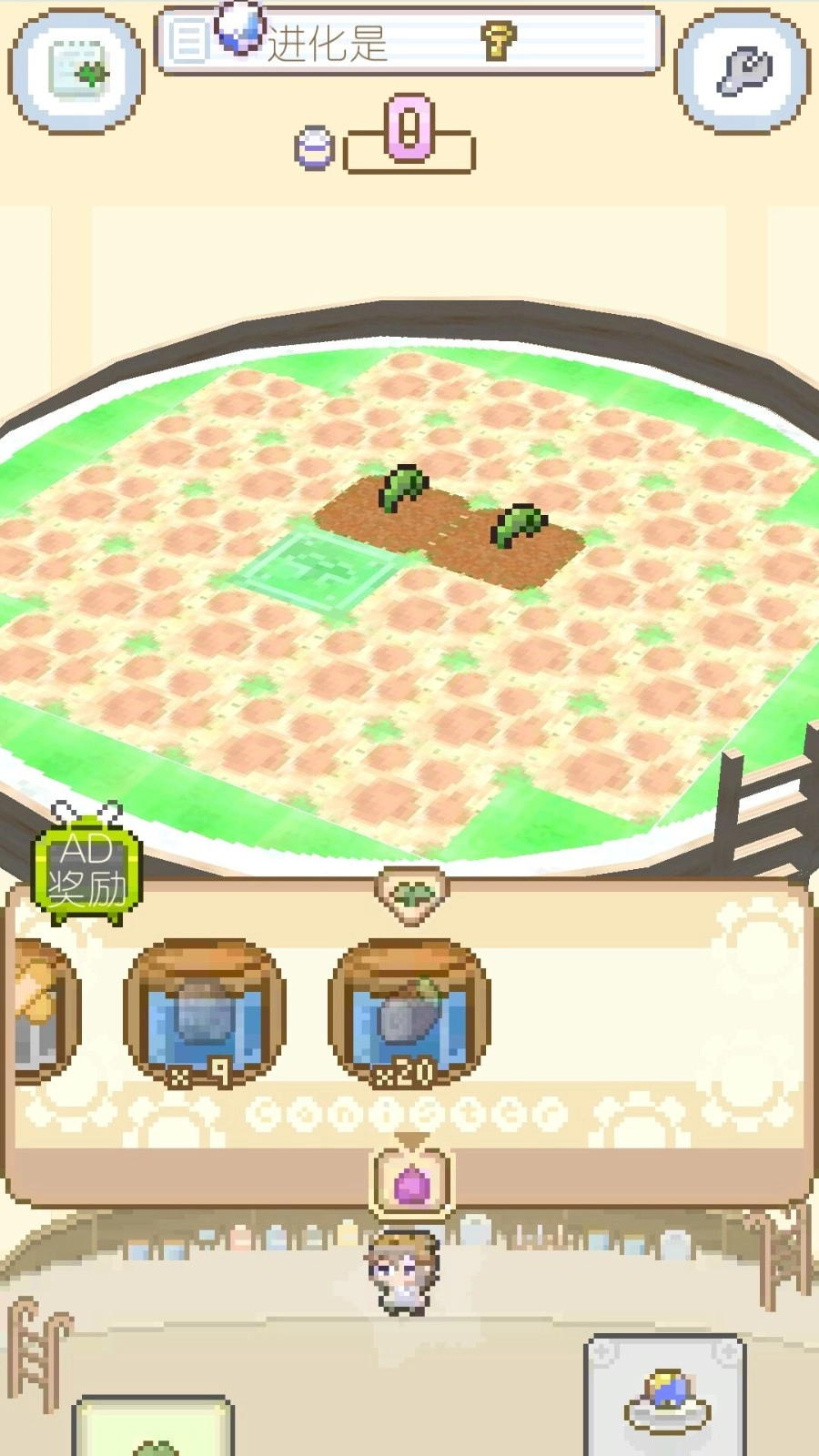 2.用指尖点击瓶子来培育植物,把培育出的新植物移栽到土地上,让它们持续进化,以此观察地球的形成过程。