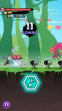 一款以忍者为主角的经典音乐节奏跑酷闯关休闲益智小游戏,玩家需根据出现的各类音符施展不同技能攻击。在每个关键瞬间释放对应技能,精准把控游戏节奏才能打出高额伤害——通过持续计算时机,在最佳时刻爆发最大输出,成功消灭眼前的妖怪。不同节奏带来的伤害与连招效果各异,尽情挑战这场音乐冒险吧!感兴趣的话就一起来玩~