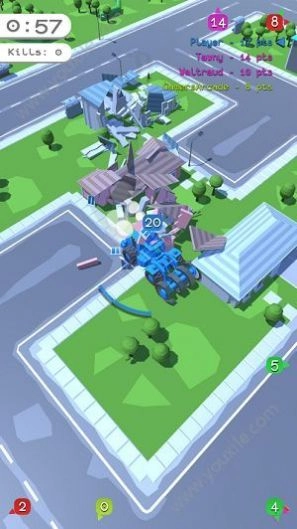 1、玩家操控车辆清理城市内所有垃圾,待基础建设完成后,即可着手搭建高楼。