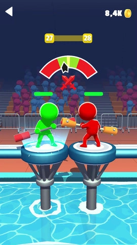 只要双方中的任意一方落入水中,这场比赛便宣告结束,你得留意自身安全,千万别掉下去。