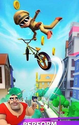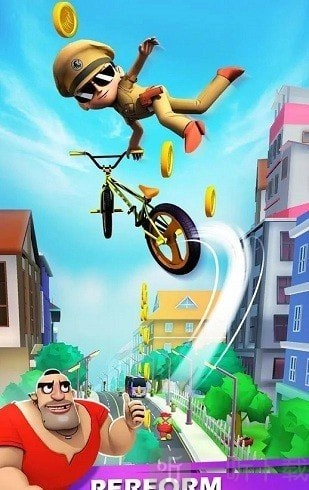 玩家在前方跑酷时,身后有一名警察紧追不舍,玩家必须加快速度,避免被警察追上。