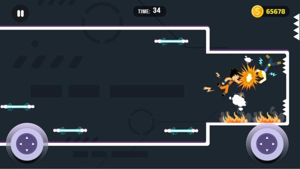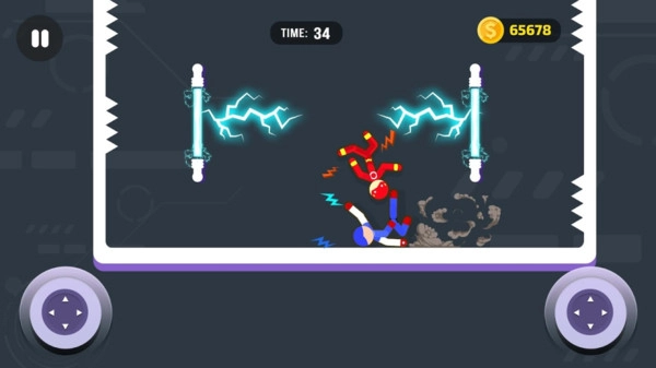 横版卡通风格的2D场景,地图设计十分简洁,但那些能释放闪电的柱子会让战斗难度有所提升。