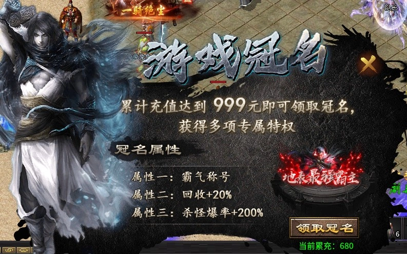 冠名998【难度相对较大,原因是沙巴克仅在首次合区时开放,之后都需通过跨服争夺获取】