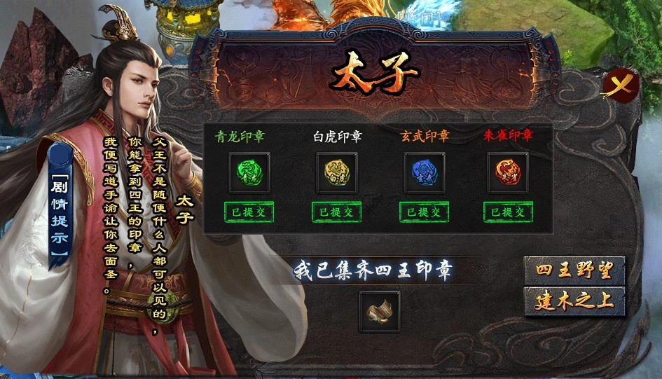四大陆四个图的boss会出印章