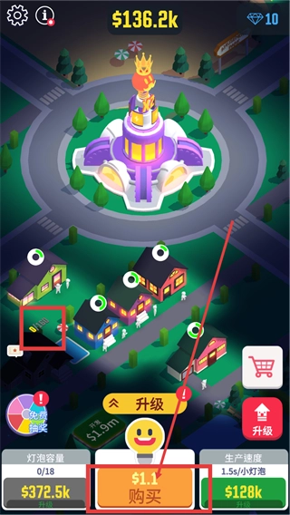 3、点击【$1.1-购买】按钮来获取灯泡,收集灯泡是开展业务的基础,多储备一些灯泡能让后续的业务推进更加顺利。