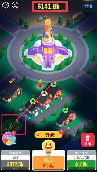 3.体验经营城市的乐趣,积累丰厚的财富,成为名副其实的大亨。借助升级提升灯泡的生产效率。