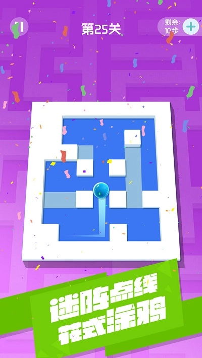 滑动屏幕来操控弹球向上下左右滚动,只有当弹球碰到墙壁时才会停下并转向。开动脑筋,让弹球经过迷宫里的每一个角落,把所有区域都涂色完毕就能通关。每一张地图都是独一无二的。