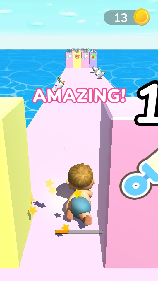 道具搜集属性提升:在前进的过程中收集奶嘴等各类道具,这些道具可以增强宝宝的属性战力,使冲刺变得更加轻松,帮助宝宝快速抵达终点,从而提高闯关的效率。