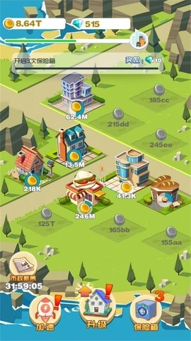 这款游戏的一大特色是操作简便,玩家只需点击屏幕就能轻松游玩。游戏中设有多种特殊建筑可供解锁,这些充满卡通风格的精美建筑能为玩家带来独特的视觉享受。玩家可以通过持续点击来升级建筑,从而获取更多的资金收入。此外,玩家还能开启保险库,不仅有机会赚取额外资金,甚至可能获得特殊建筑作为奖励。