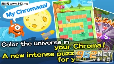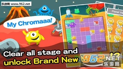 操作就能解开谜题。游戏中,玩家要在8X8的方块区域里操控一只小妖怪,借助它手中的油漆将不同颜色的方块统一染成同一种颜色,以此完成关卡目标。