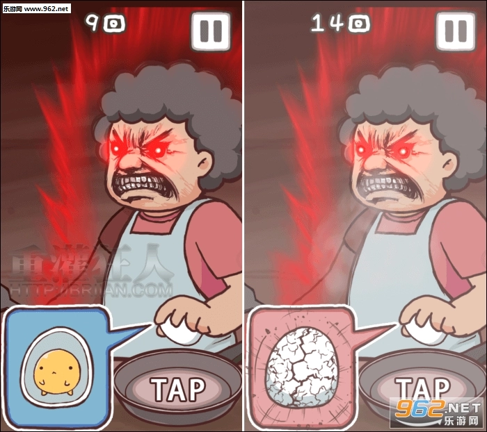 当阿桑始终无法打破鸡蛋时,就会化身成疯狂的阿桑。因为打蛋的节奏毫无规律,所以稍有走神就很容易失误,一旦失误次数超过4次,蛋壳就会碎裂导致失败!