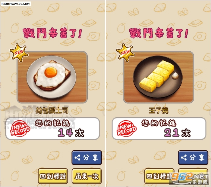 根据成功阻止破蛋次数的不同,能够收集到各式各样的蛋料理。
