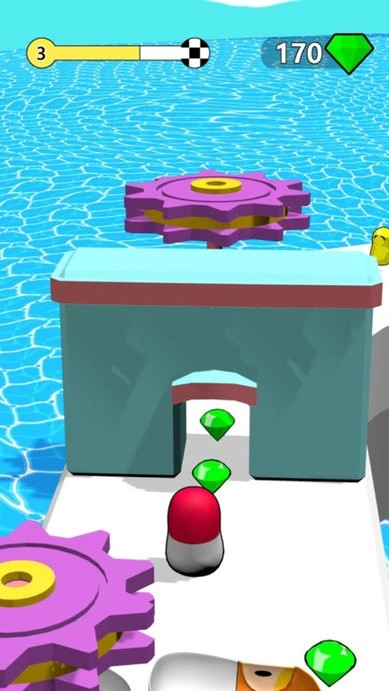 当遇到障碍时,你可以点击屏幕让小豆豆褪去一层外壳,然后它就会跳跃起来继续前进;同时,看到彩色钻石也别忘了收集哦。
