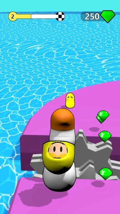 到达终点后,得用收集到的全部外壳来跳跃,持续点击屏幕,让小豆豆往前跳跃,直到所有外壳都用完,就能拿到后面的翻倍奖励。