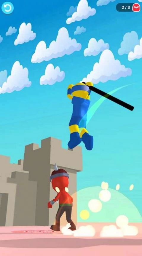 2、忍者击打竞技:在解救场景中受困的无辜平民时,出其不意地击败对手,完成当前关卡的挑战后,即可进入难度更高的下一关。