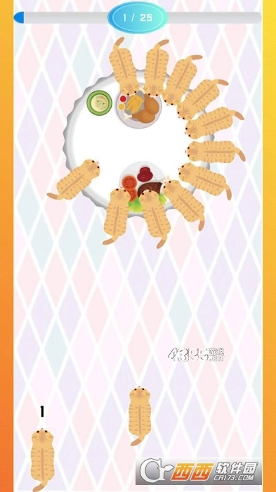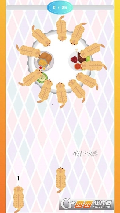 寻找合适的角度发射动物,使其能顺利抵达餐桌。
