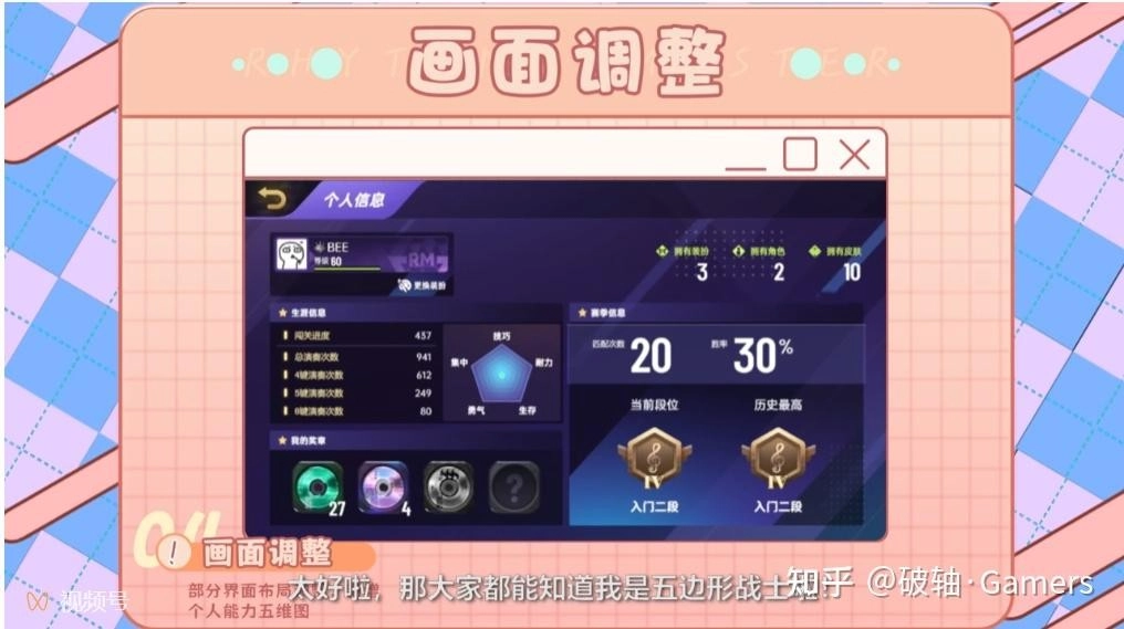 个人信息界面新增了五维图,可对玩家实力进行量化呈现!
