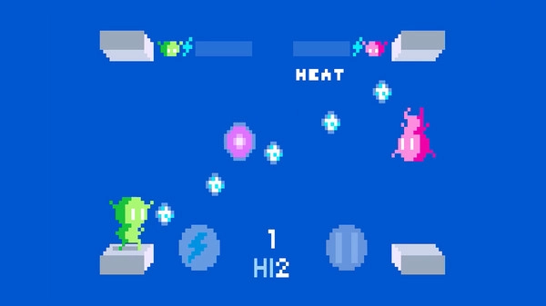 在收集能量球的平台间来回翻转,把攻击力计填满,就能向敌人发起攻击啦。把他打成紫色颗粒,就能提升你的分数!