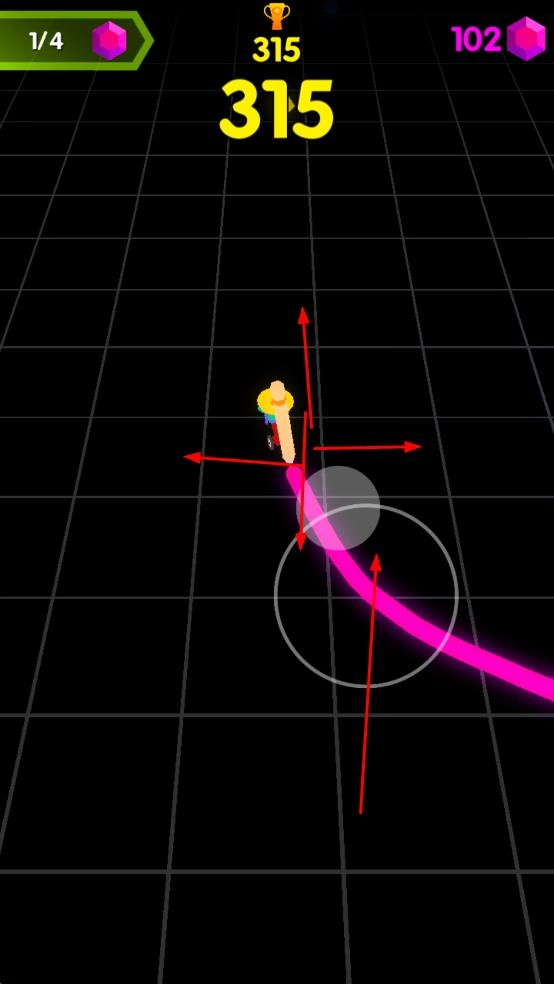 操控角色沿着指定路径绘制出彩色线条,借助滑动操作来调整绘制方向,不断积累分数以推动游戏进程。