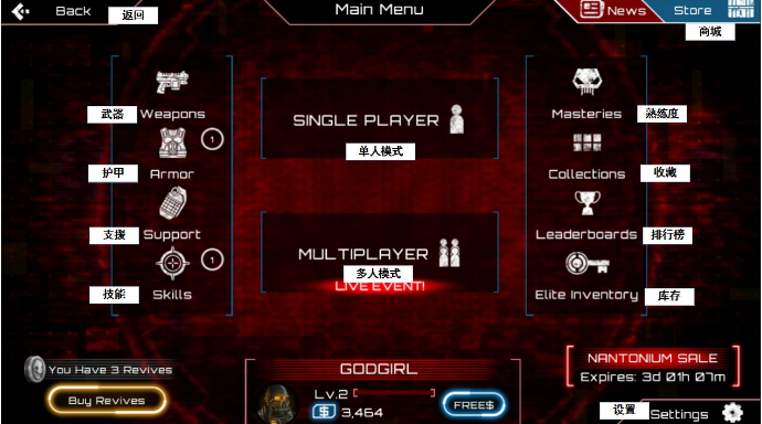 武器在第一关通关的时候就可以获得一把,非常好用,只是换子弹会有点慢,但足够我们用到后期了;防具说过了不需要太多,而且关卡中几率会爆,所以不需要太在意,手榴弹和大炮能省则省,前面几个关卡也不难,留着后面用吧。