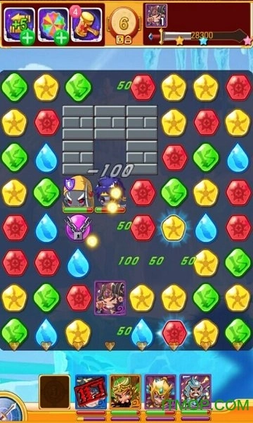 破除障碍:清除指定障碍物即可取得胜利。与消灭敌人的机制类似,消除障碍物上下左右的符石就能对其造成伤害,障碍物具备一定生命值。部分障碍物与周围符石存在间距,此时仅能借助特殊符石发起攻击。例如普通战役第25关“张飞杀猪”,指定目标周边的符石无法直接消除,需通过特殊符石消除一整行或一整列的符石来对目标造成伤害,同时也可使用道具锤子攻击目标。