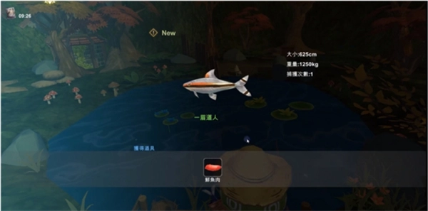 4、点击鱼出现在鱼塘中的位置