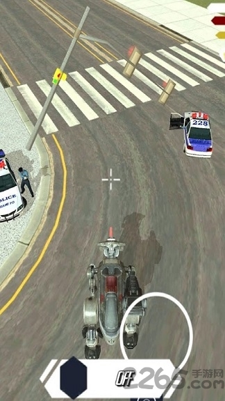 可以变成警用射击机器人,在机器人城市游戏里肆意横行城市街道;