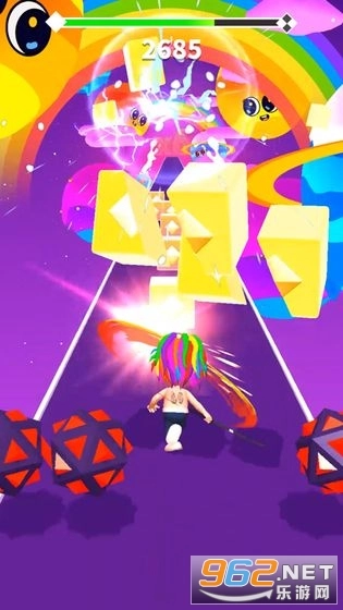 选择3D手机游戏界面,以第一人称视角边玩游戏边听音乐。所有的箱子都在朝你跑来。