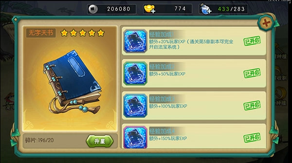无字天书可以增加玩家额外经验值