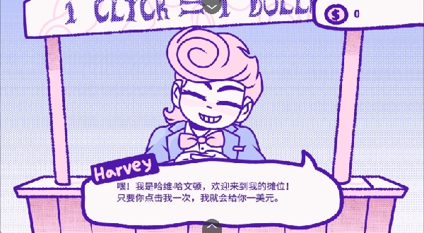 1、你只需持续点击屏幕上名为“哈维”的角色,每点击一次就能得到1美元的基础收益。