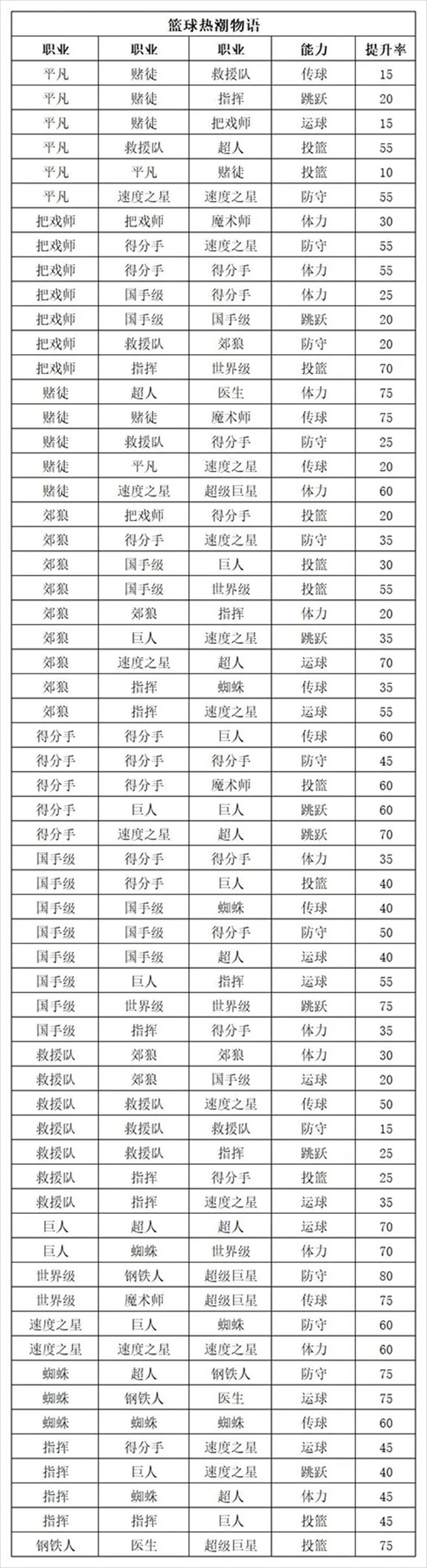 评级分为1至5星,其中5星包含3个——超级巨星、钢铁侠与医生;4星有4个——超人、世界级、魔术师和蜘蛛人;3星共4个——指挥、得分手、速度之星及壮汉;2星为3个——救援队、郊狼、国手级;1星则是3个——平凡、赌徒、把戏师。