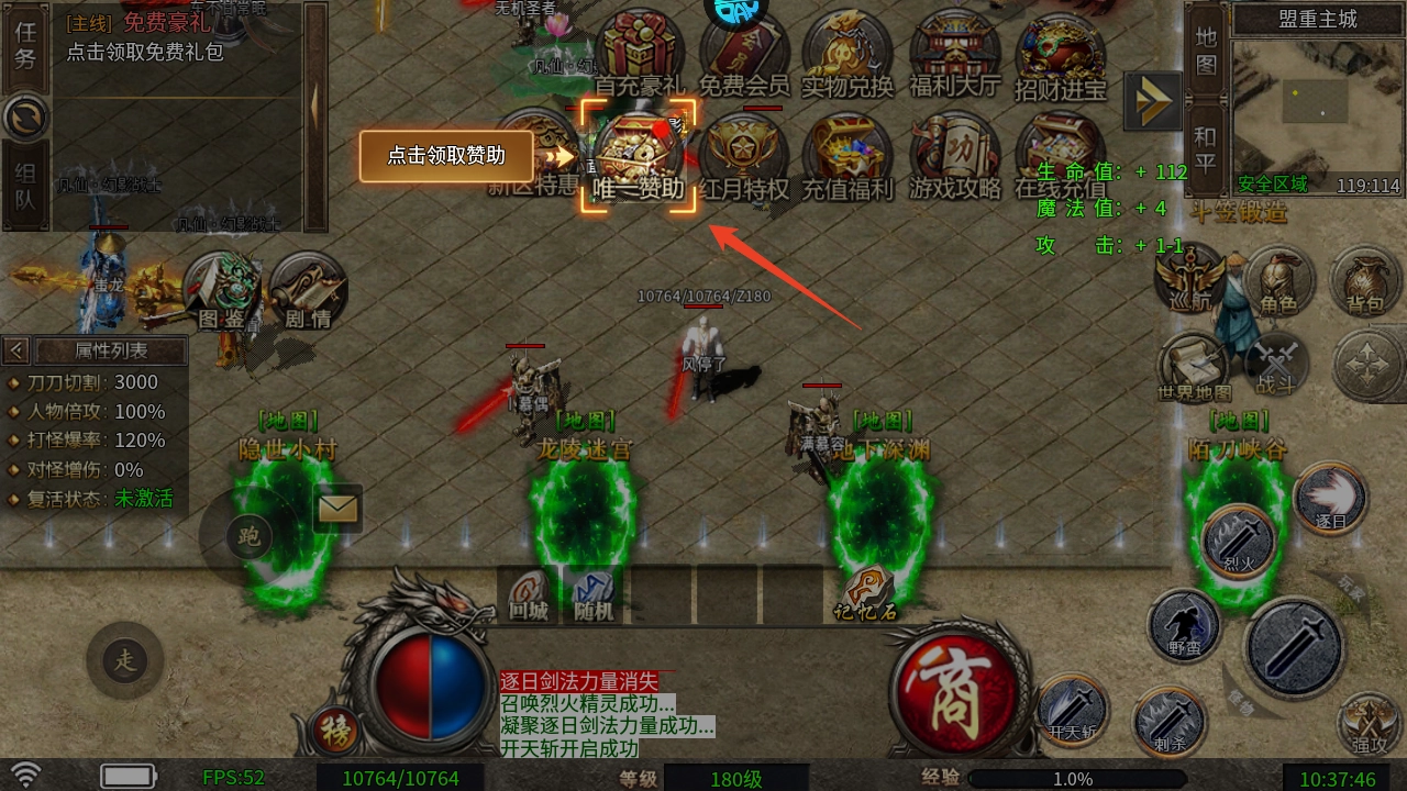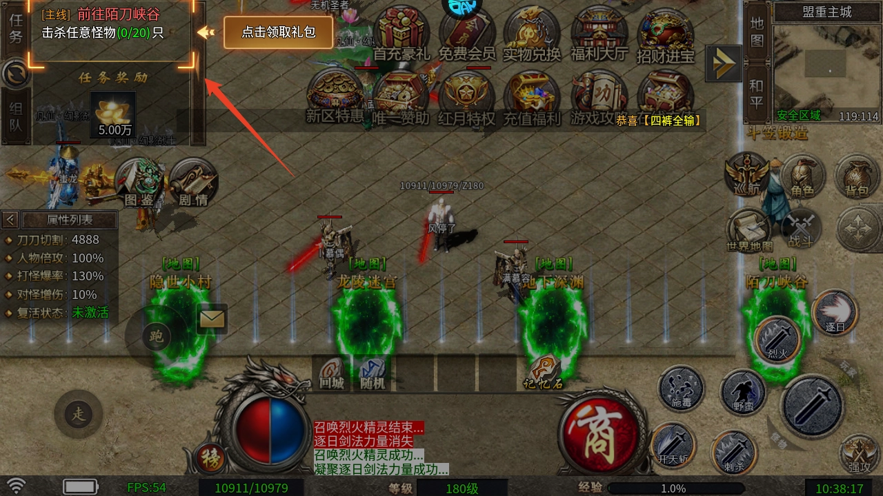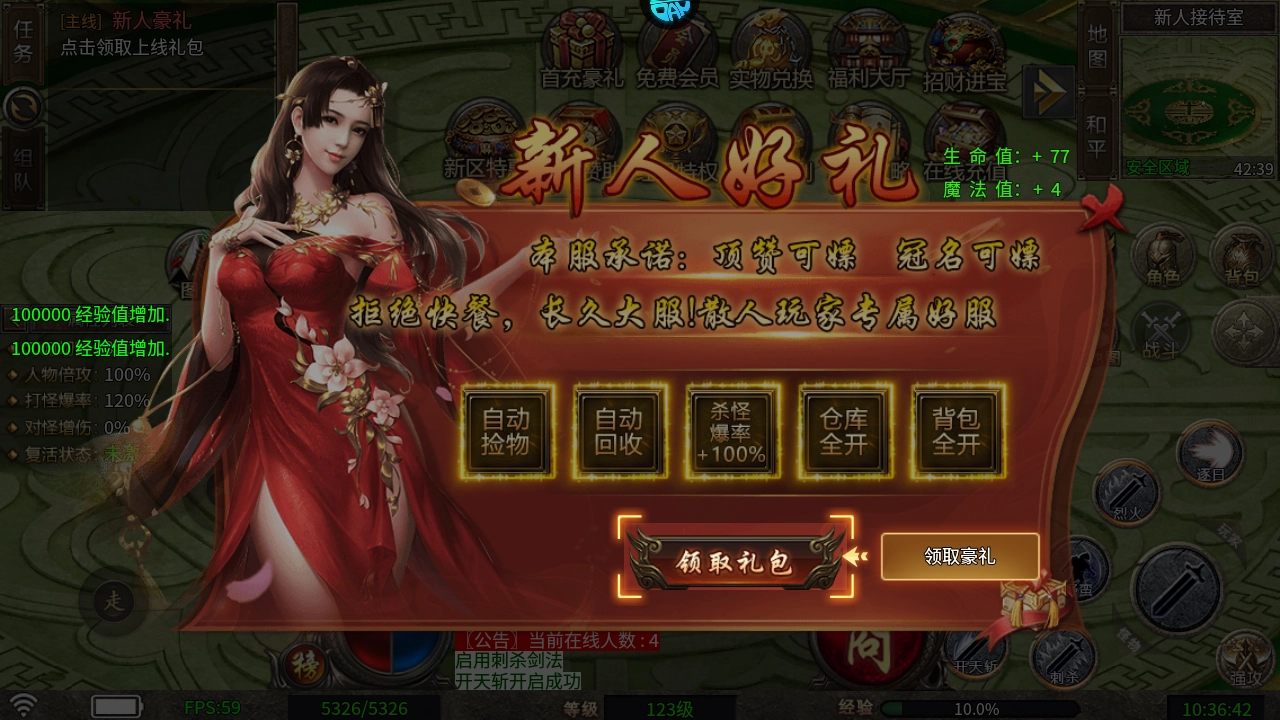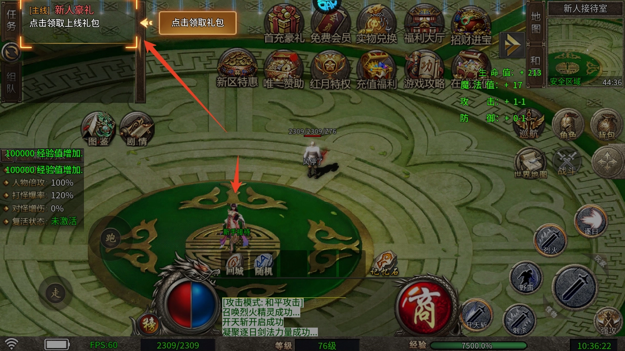 2、进入游戏后,可点击左上角领取礼包,也能通过点击新手引导NPC来领取。