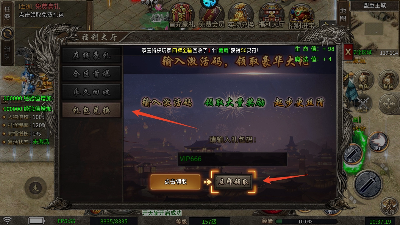 5、我们点击礼包兑换,激活码已预先其中,无需玩家手动输入。
