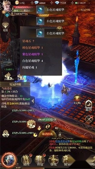 3、战斗过程中要是对星魂品质不太满意,可以消耗30水晶召唤黄金首领(爆率会提升300%),将其击败后就能得到稀有星魂奖励。