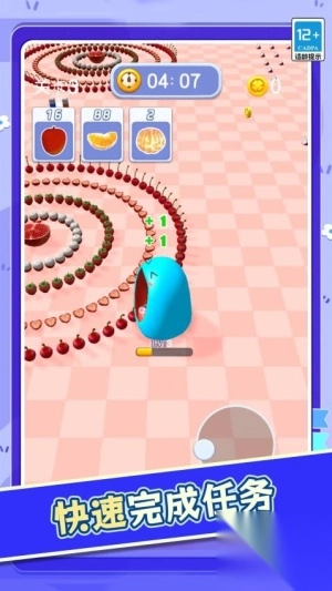 进入关卡后,要立刻操控角色去吃掉各种物品,优先收集那些食物密集区域的食物,这样能快速积累能量,提升角色的等级和体型。